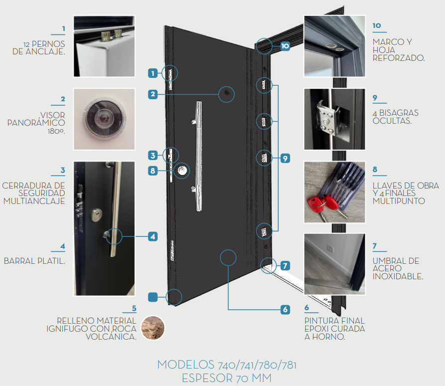Modelos 740 / 741 / 780 / 781 · Espesor 70 mm.